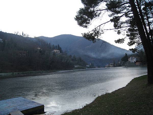 兩光的GPS把我們帶到一處杳無人煙的深山裡, 除了一座結冰的湖外, 哪裡來的Outlet? 我們詢問了當地的房地產仲介, 才得知我們不是第一組傻瓜, 不知道多少人被GPS帶到這邊, 當地的房仲小姐非常親切又熟練地告訴我們, 在設定GPS的時候, 千萬不要輸入書上或網站上完整的地址, Via Europa 8 50066 Leccio Reggello, 而只要蒐尋Leccio這個小鎮就可以了!
