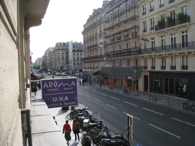 從窗戶望出去左手邊紅綠燈那裡就是地鐵Etienne Marcel站