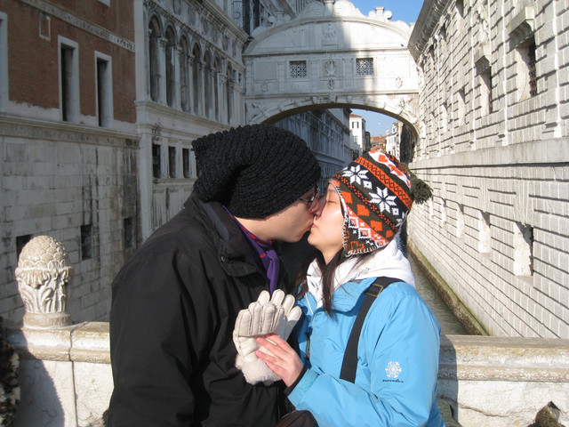 不知道這個將自己的快樂建築在別人痛苦上的傳說是怎麼來的, 雖然我們也沒搭乘貢多拉, 但我跟Joy還是湊熱鬧地親了一下