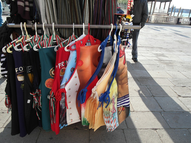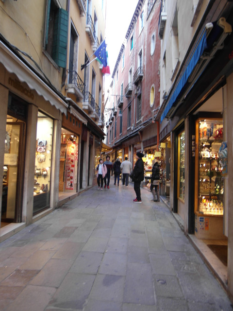 從聖馬可大教堂出來肚子也餓了, 我們就隨意地鑽進一旁的小巷覓食, 威尼斯真不愧為著名的觀光城市, 到處都有販售紀念品的小攤販