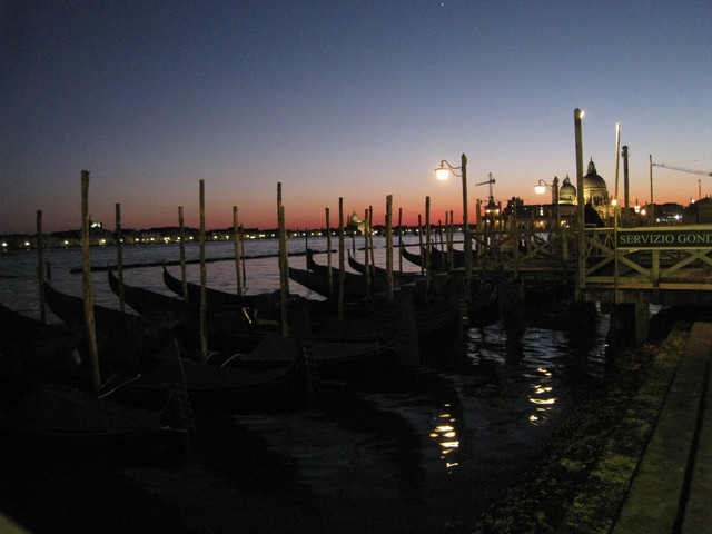 最後一抹晚霞襯著停泊休憩的貢多拉, 好美!