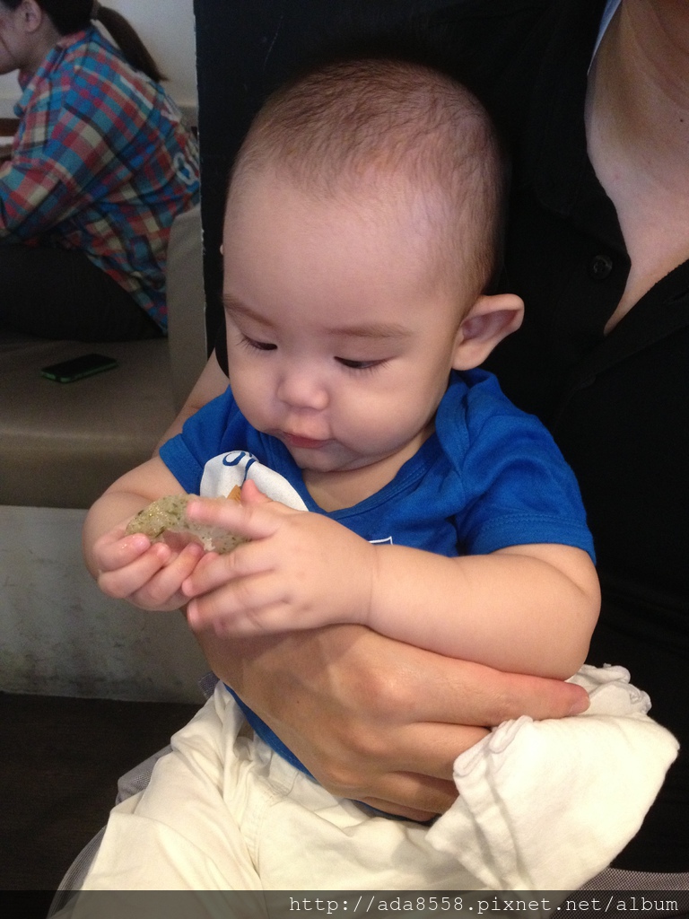 我本來是希望能盡量晚給加工食品就盡量晚給, 畢竟成分是什麼我們實在不知道, 但看國外BLW社團的媽咪都有給寶寶吃麵包, 想想反正他也吃不多, 就偶一為之囉!