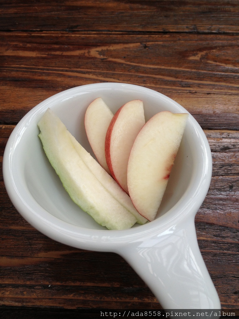 看他麵包吃的那麼高興, 媽咪剛好看到網路上有人分享天然酵母的培養方法, 於是照著養了蘋果酵母, 用最簡單的原料(麵粉+義大利帶回的蒜味橄欖油+少許法國高級鹽之花+非常少量的法國鸚鵡牌天然蔗糖)親手揉製, 自己做的最安心! 小芋圓一放進嘴裡, 露出的滿意表情, 讓媽咪覺得一切都好值得呀! (但又忘了照相~冏)