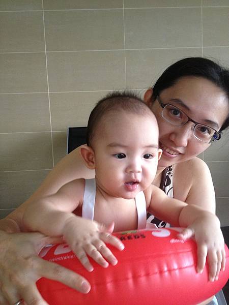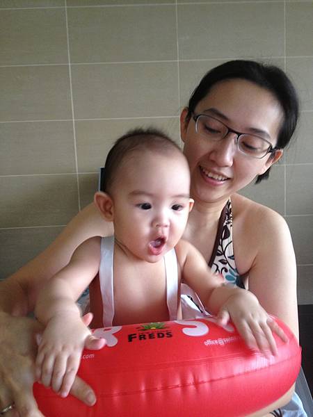 看見這麼大的水池, 小芋圓在套游泳圈時就超級興奮!