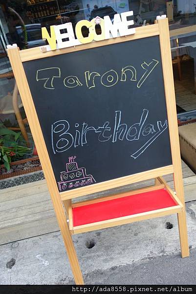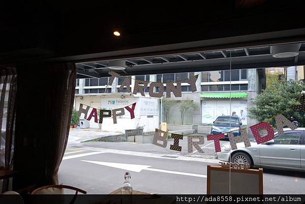 為了省錢 我參考網路上別的媽咪的做法: 去大創買色紙自製派對旗+英文字母 貼在餐廳玻璃&牆面上