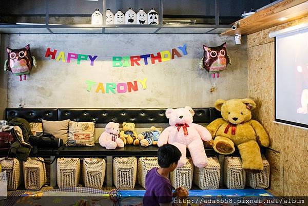 因為老闆娘Fish知道是小朋友的生日派對,所以特別從家裡帶來個人珍藏的大小泰迪熊,擺在一起也很有感覺呢!