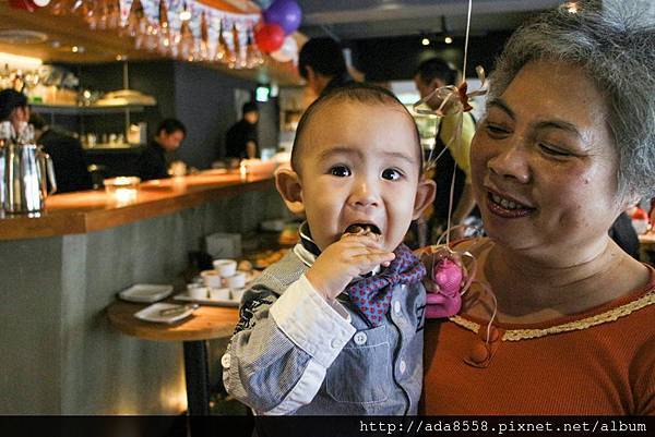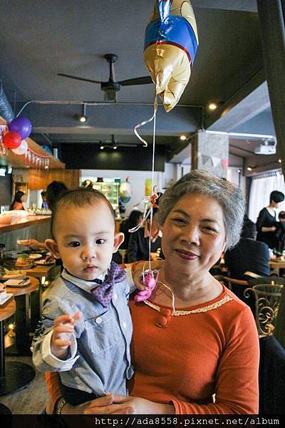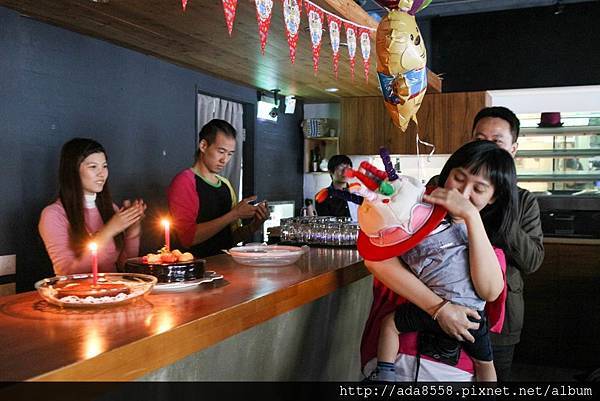 不管! 還是幫小芋圓戴上餐廳特別去買的壽星帽, 大家也熱情的唱了生日快樂歌(想必他夢裡有聽見吧XD)