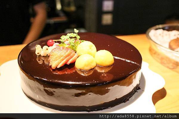 已經被切一刀的巧克力慕斯蛋糕~好香濃綿密啊! 媽咪自己吃了好喜歡!