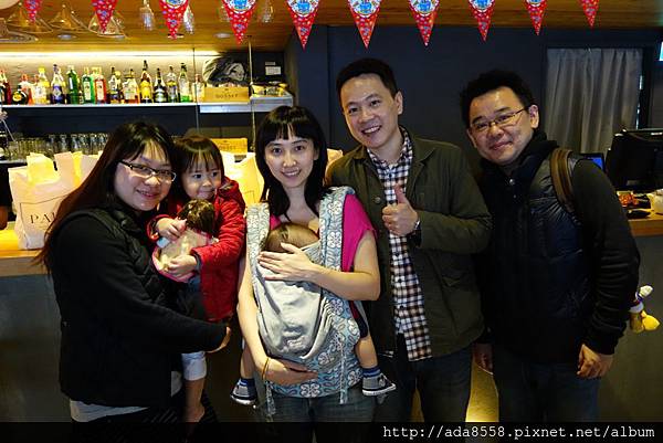 還有遠從彰化趕來參加的小阿姨(後排中央), 從事服務業的她很難得可以周休二日休假, 特別北上參與小芋圓的抓週和生日趴~