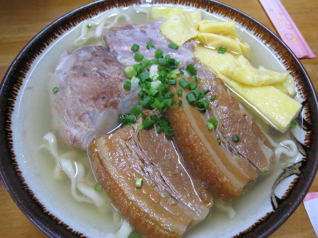 位在巷弄裡的小店不是很容易找, 但是真的很好吃呀! 我後來在國際通上的餐廳也試過沖繩麵, 但真的沒有這家好吃! 湯頭清而不淡, 豬肉入口即化, 超好吃的! 而且一碗才400元日幣唷! 我們兩個愛吃鬼因為還想去吃旅遊書上推薦的迴轉壽司, 所以兩個人只合吃一碗麵
