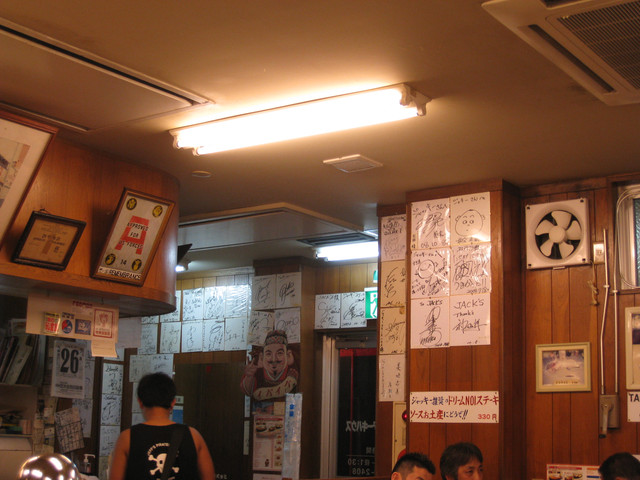 牛排店也是貼滿了簽名表現人氣