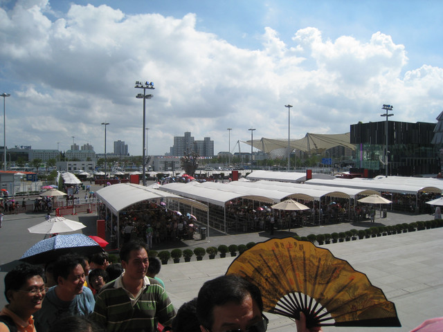為了配合中國館的預約時間, 我們早上只先參觀了加拿大跟巴西, 然後就乖乖地集合去排隊~但是中國大陸也真是愛裝排場的! 明明就照預約時間去了, 還是要排隊! (是想營造很紅火的假象嗎?) 整個在外面排隊就排了將近三個小時! 那一個個白色棚子底下可全都擠滿了人呢!