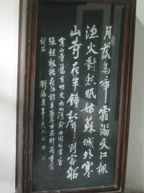 鐘樓外還有一個超大的石碑刻上楓橋夜泊這首詩, 看一下底下站的男生, 就知道這大的有多誇張呀!