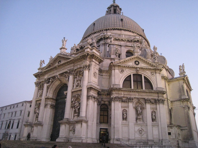 趁著天還沒黑, 我們前往下一站"安康聖母瑪莉亞教堂", 在轉船時, 正好遇見一艘豪華郵輪要航離威尼斯