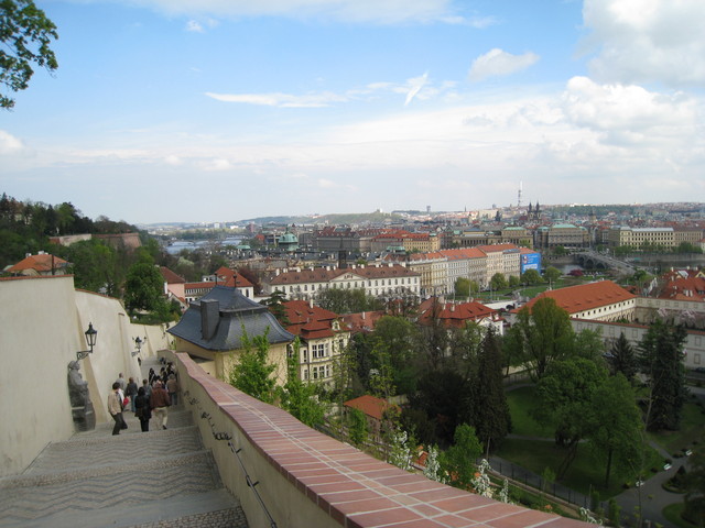 沿著階梯可以一邊欣賞美景, 一邊抵達市區, 步行就可以到達查理大橋(我上次也是這樣走, 但上次來的時候沿著樓梯整條都是特色小販, 這次不知怎的整個被清空了呢!)