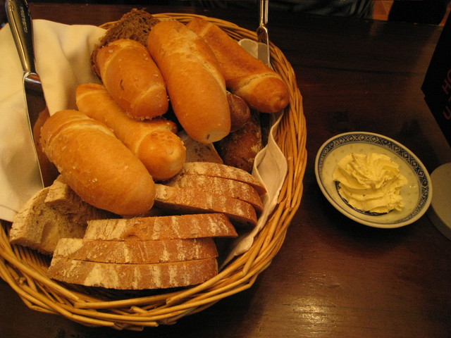 滿懷期待的我們點了著名的捷克烤鴨跟Mook推薦的鮮魚料理, 不過在那之前, 當然是先享用免費的麵包和奶油啦!